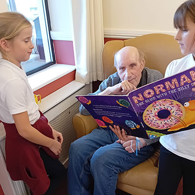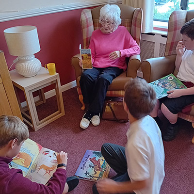 “The children at St Mary’s Primary School love coming to share books with the Residents. It is obvious to see the pleasure had by both parties and some lovely friendships have been formed. The children have grown in confidence and gained an understanding of a part of their community as well as bringing joy to the Residents. We also branch out and sing at Christmas and help with gardening in the summer!”